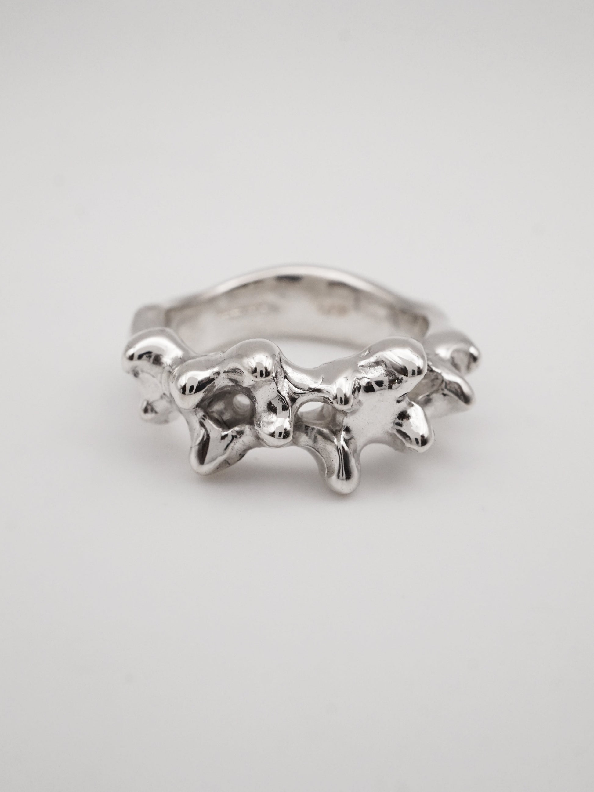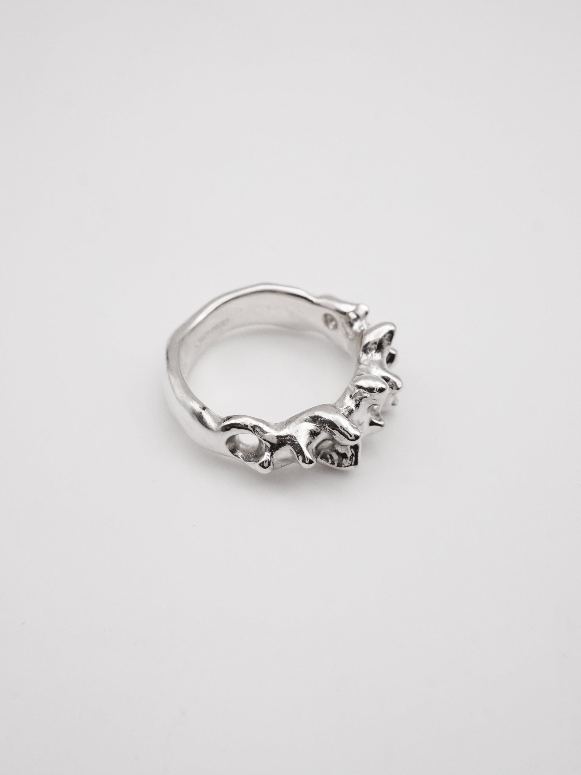 This ring was first carved in wax and then cast in solid sterling silver.